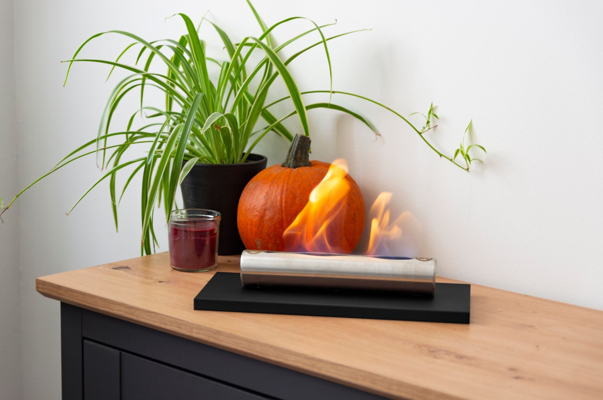 Vrijstaande bio-ethanolhaard “Stainless” — mat zwart, RVS-brander